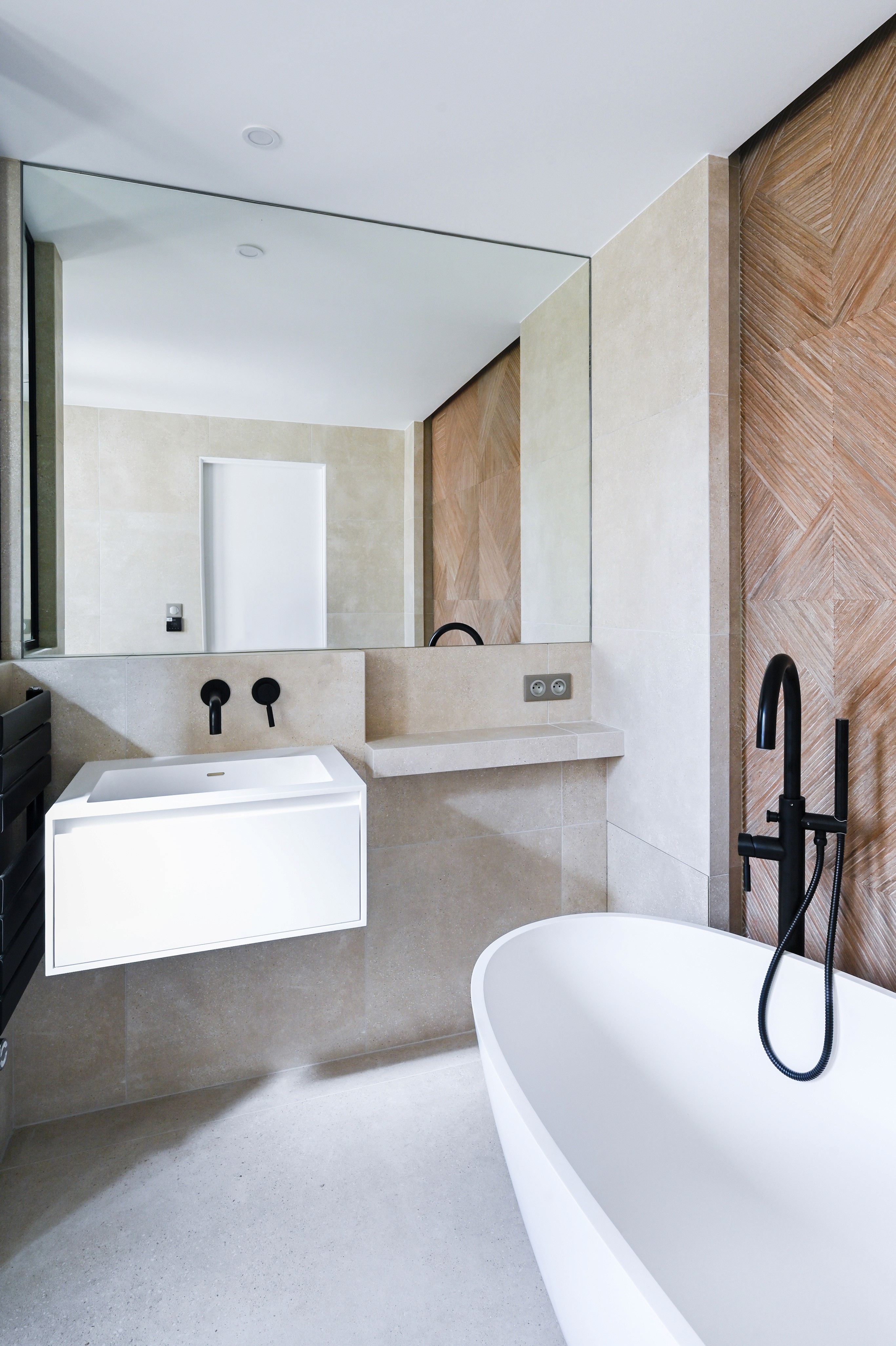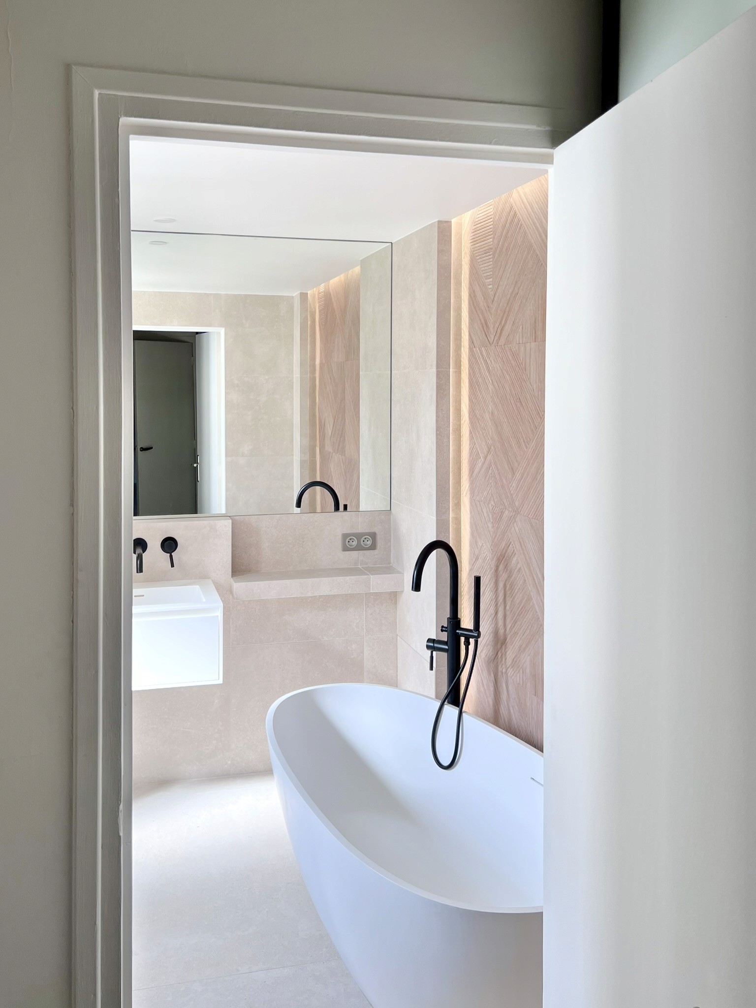 La transformation intégrale de cette salle de bain a permis de redéfinir les volumes et de créer une ambiance contemporaine, élégante et apaisante. Les contrastes de matières, les lignes verticales et l’éclairage indirect renforcent la sensation de confort et de qualité, tout en optimisant l’usage au quotidien.